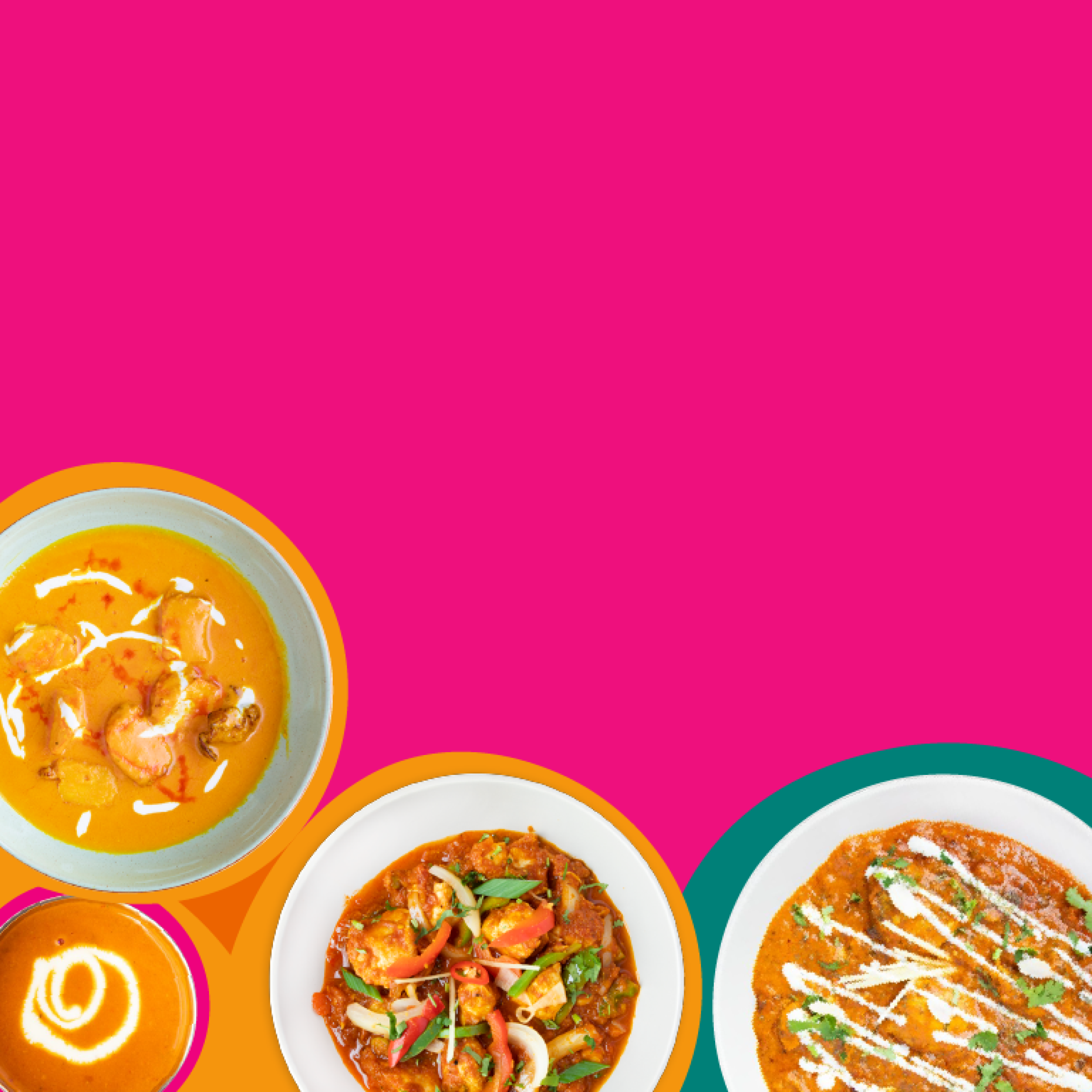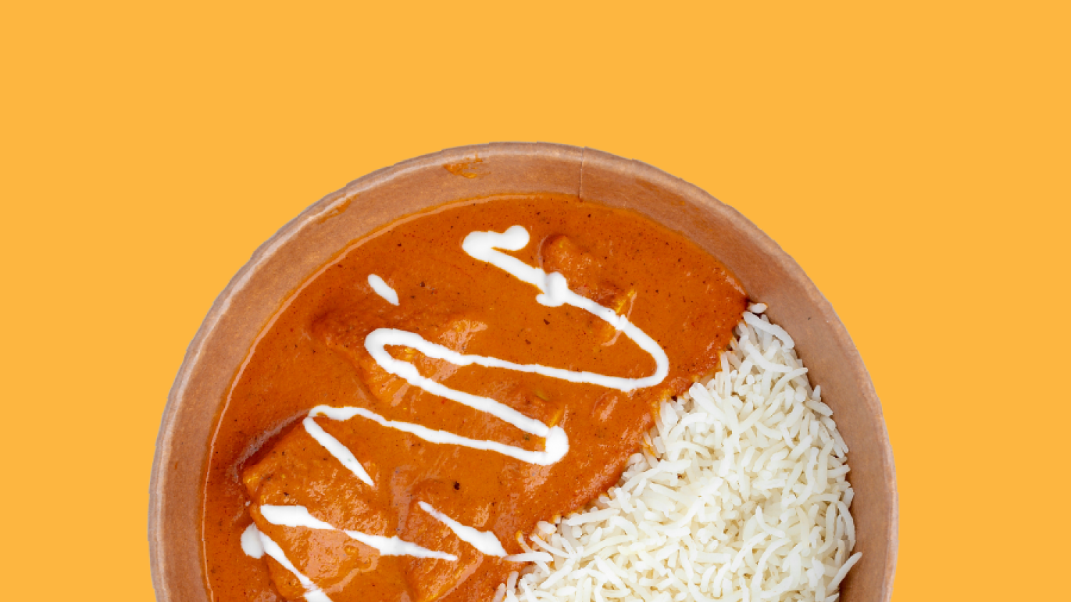 Choose between: Tikka masala, jalfrezi, butter masala, or korma, with basmati rice.